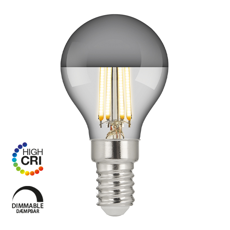 Pæren er topforspejlet i kromlook så blænding undgåes ved brug i åbne lampeskærme etc.